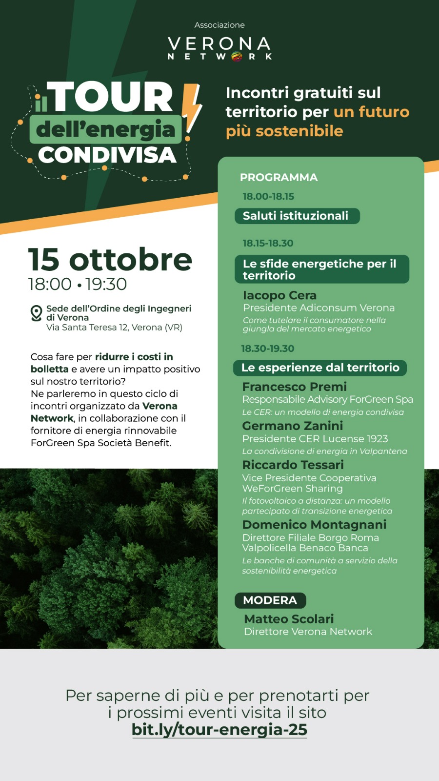 Associazione Verona Network: Tour dell’energia condivisa | Verona, mercoledì 15 ottobre 2025: NO CFP
