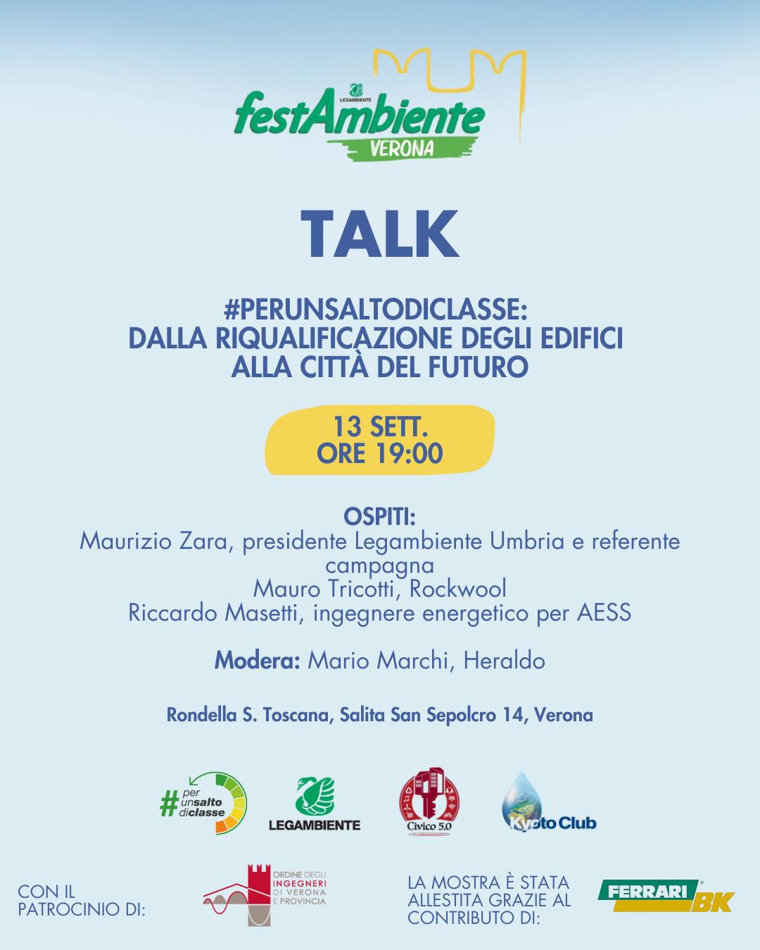 Festival Festambiente Verona 2025 – Talk #Perunsaltodiclasse: dalla riqualificazione degli edifici alla città del futuro – Sabato 13 Settembre 2025: NO CFP