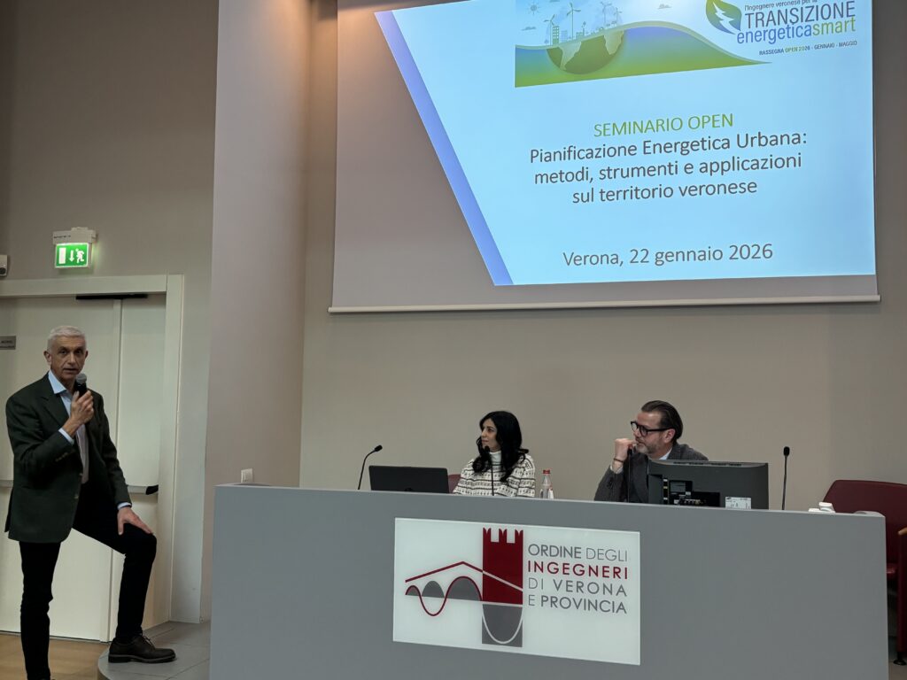 Verona, 22 gennaio 2026 – Anche Verona potrà essere protagonista della futura transizione energetica dei centri abitati italiani ed europei. Dal metodo innovativo dell’analisi mirata del potenziale di efficientamento energetico dei quartieri, proposto dall’Università Iuav di Venezia tramite il caso-modello di Santa Teresa, al progetto di Positive Energy District in fase di studio da parte del Comune. Tante le prospettive in un territorio che vedrà 150mila unità immobiliari interessate alla Direttiva EPBD4 dell’Ue sull’efficientamento e che è arrivato non solo a contare 9 Comunità energetiche rinnovabili (di cui due in città) ma a passare nel settore del fotovoltaico, tra 2019 e 2024, da 387 GW/h a 576 GW/h di produzione, terza provincia veneta dietro Padova e Treviso, con il numero d’impianti salito da 19.335 a 41.403 (dati Gse). Un quadro in evoluzione di cui si è occupato questo pomeriggio l’Ordine degli Ingegneri di Verona e Provincia nel primo incontro della 12esima edizione della rassegna Open, intitolato «Pianificazione energetica urbana – Metodi, strumenti e applicazioni sul territorio veronese».