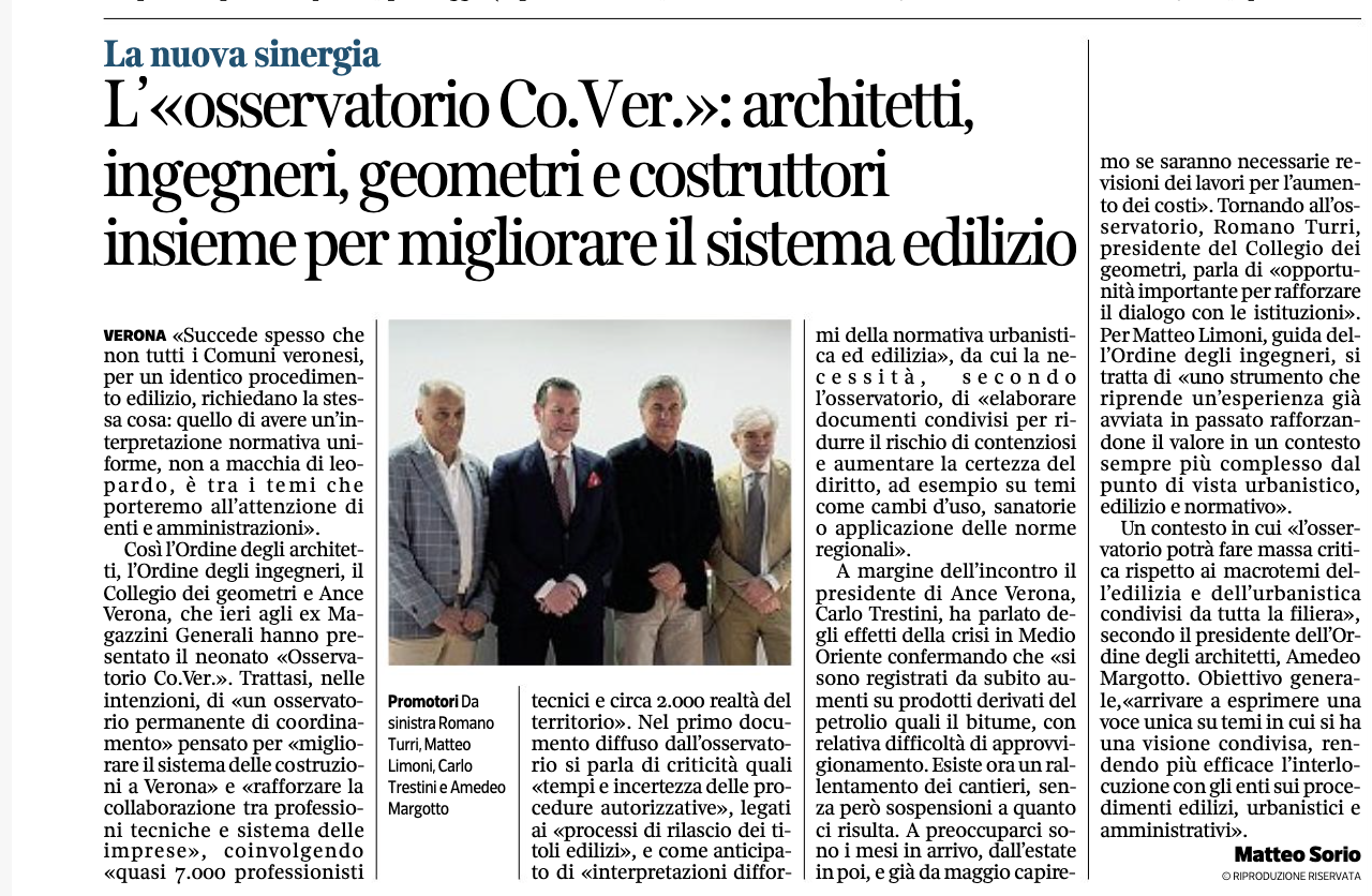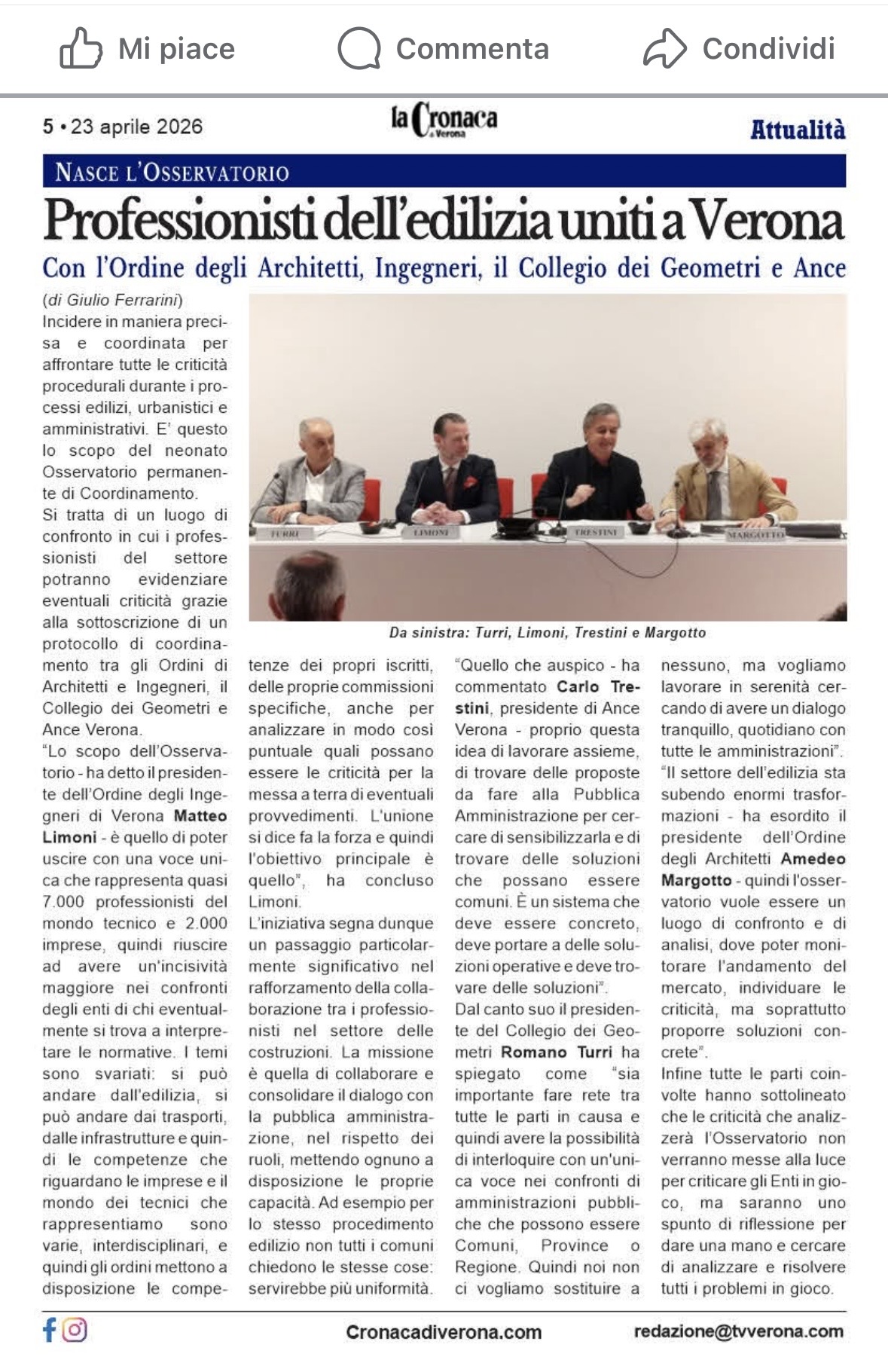Cronaca di Verona: in allegato articolo del 24.04.2026